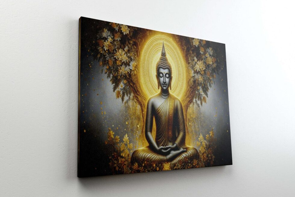 Transform your space into a sanctuary of tranquility with our exquisite Buddha wall paintings. Crafted with meticulous detail and imbued with spiritual serenity, each piece radiates peace and harmony. Elevate your home decor with these timeless artworks, perfect for creating a serene ambiance in any room. Explore our collection and invite the essence of enlightenment into your living space today The canvas is carefully stretched over a durable wooden frame, creating a gallery-quality finish that adds a touch of elegance to any room. Whether you’re looking for a Buddha framed painting for wall or a Buddha big wall painting with frame